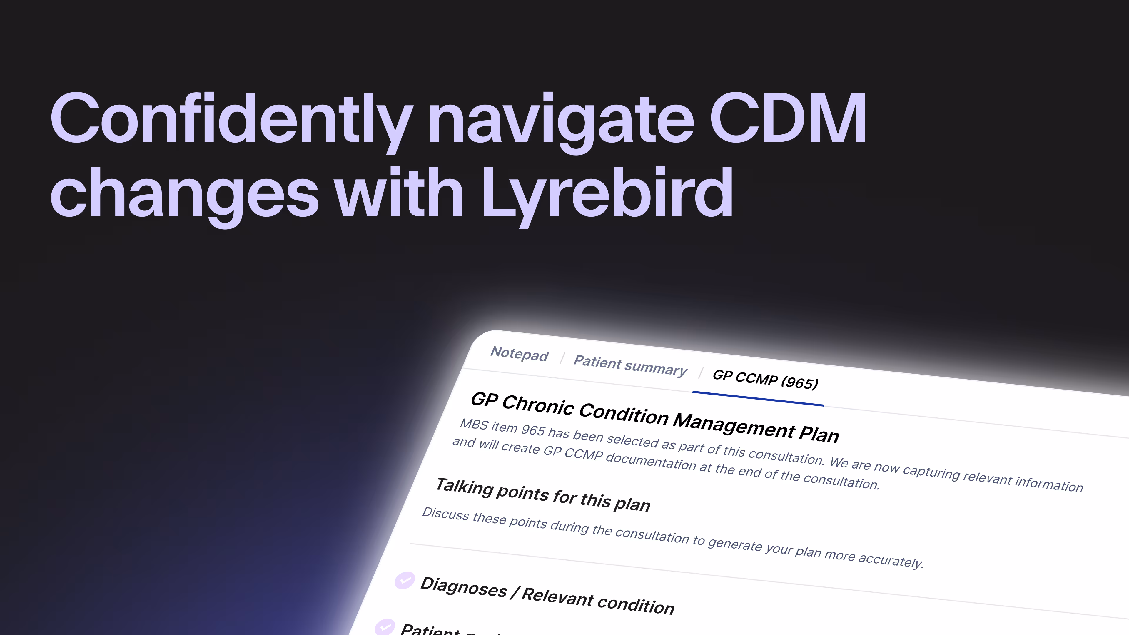 Lyrebird has built the capability to support practices through the CCMP transition—aligned specifically with the new MBS structure and available from July 1 and out of the box for BP users.